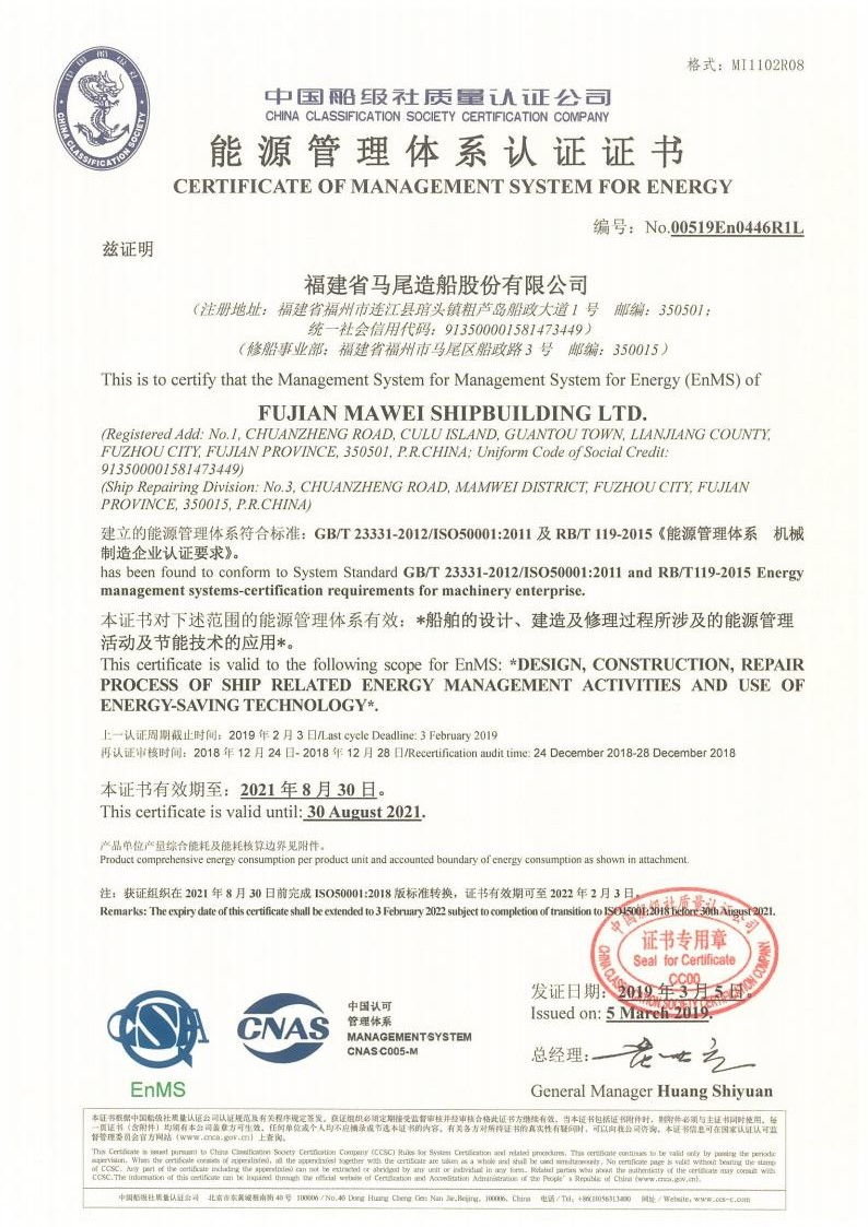 能源管理体系认证证书