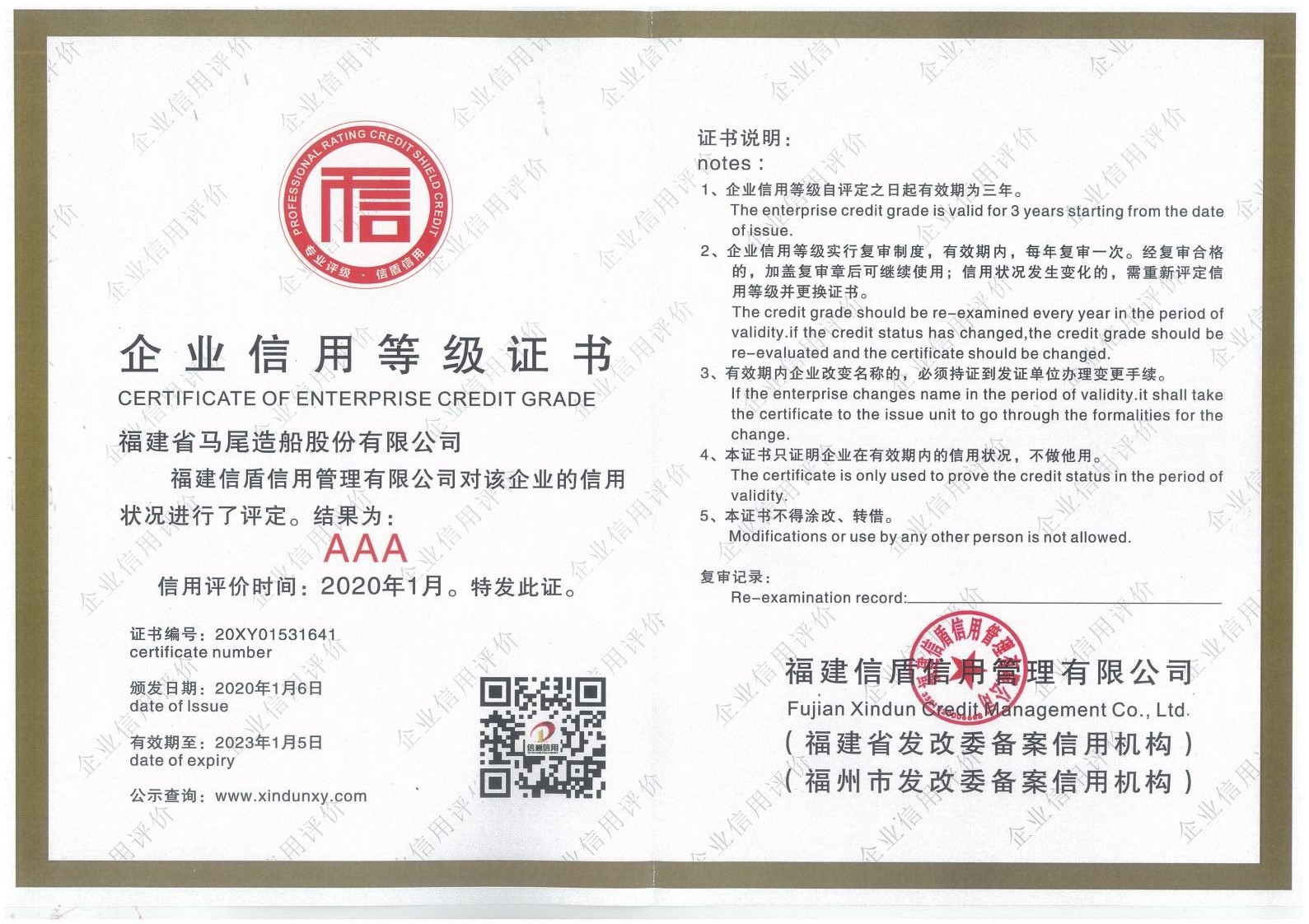 2020-2023企业信用等级证书
