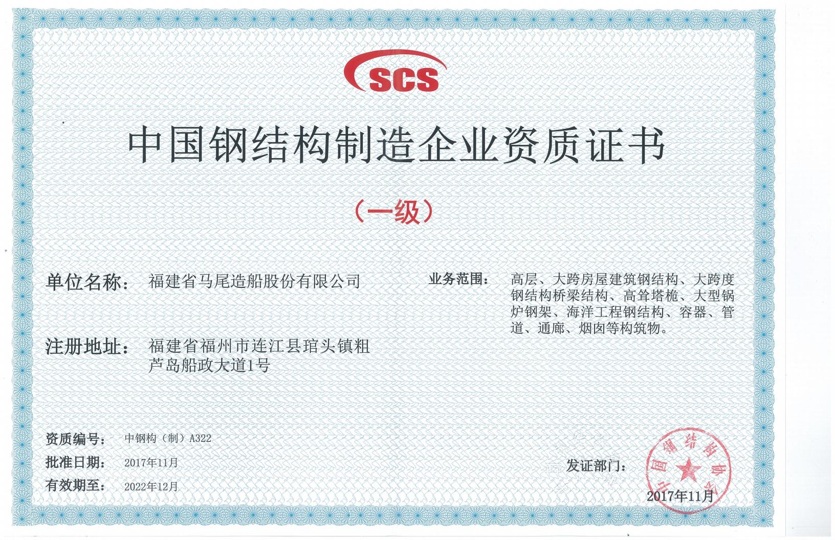 中国钢结构制造企业资质证书