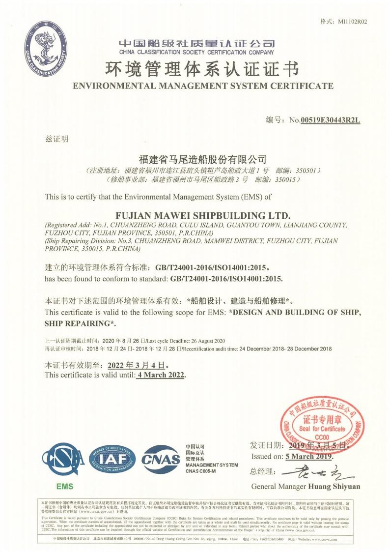环境管理体系认证证书