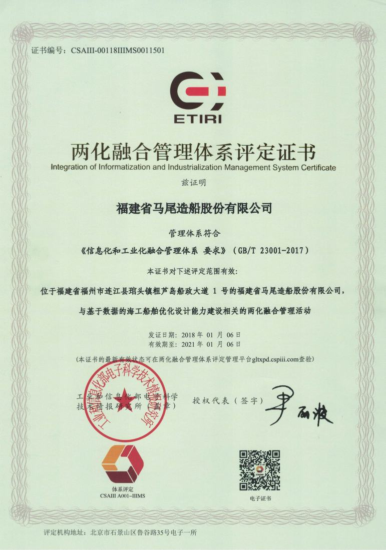两化融合管理体系评定证书