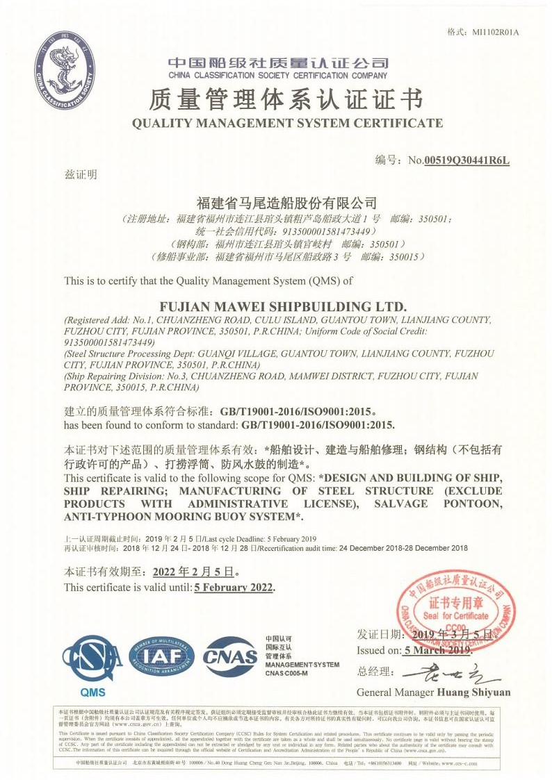 质量管理体系认证证书