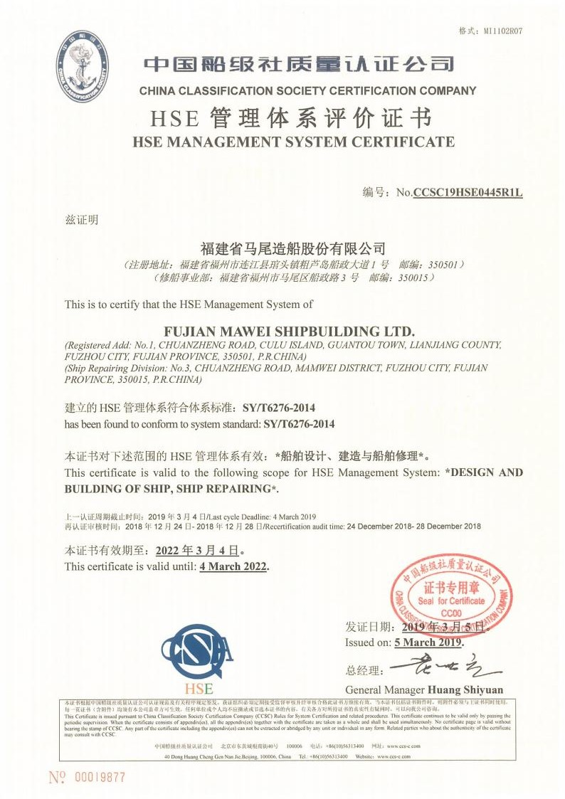 HSE管理体系评价证书